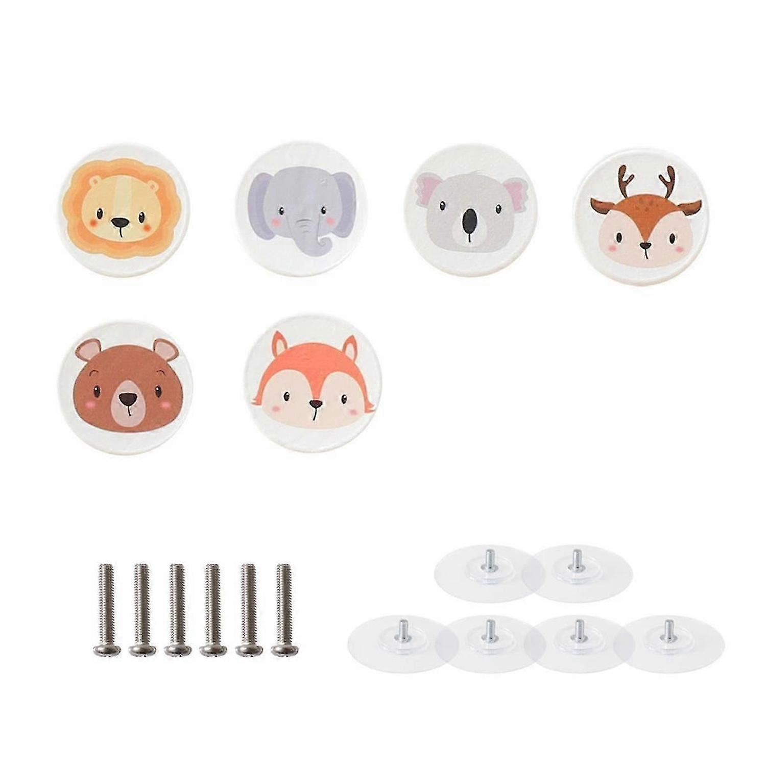 6Pack White Wooden Animal Pattern Drawer Knobs Round Shape Animal Drawer Pulls Cute Dresser Knobs Cabinets Knobs Pulls
