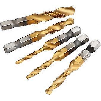 6pcs Combination Drill And Tap Bit Set Hex Metric Deburr Milling Bits Metric Drill Set (golden)