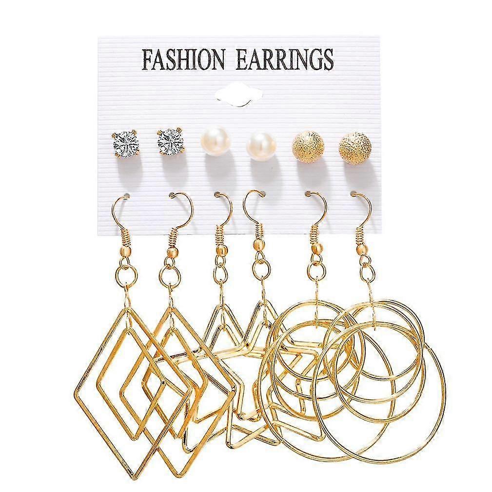 6pcs Ear Studs Set Pentagram Star Big Circle Multielemented Earrings For Wedding