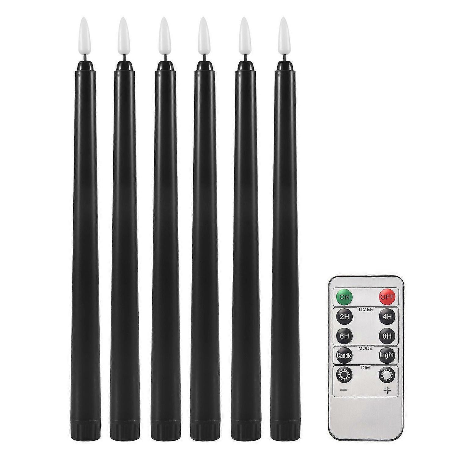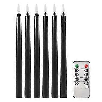 6Pcs Flameless Black Taper Candles Flickering with 10-Key Remote Timer, Battery Operated LED Candlesticks Window Candles