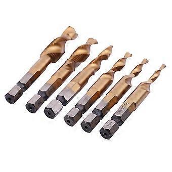 6Pcs HSS Titanium M3 - M10 Combination Hex Deburr Countersink Tap Drill Bit Set