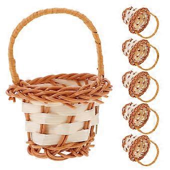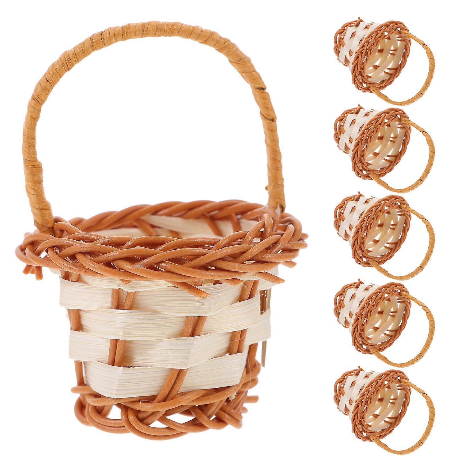6pcs Mini Woven Flower Baskets, Rattan Storage with Handles for Organizing, Rustic Home Decor for Crafts and Petals