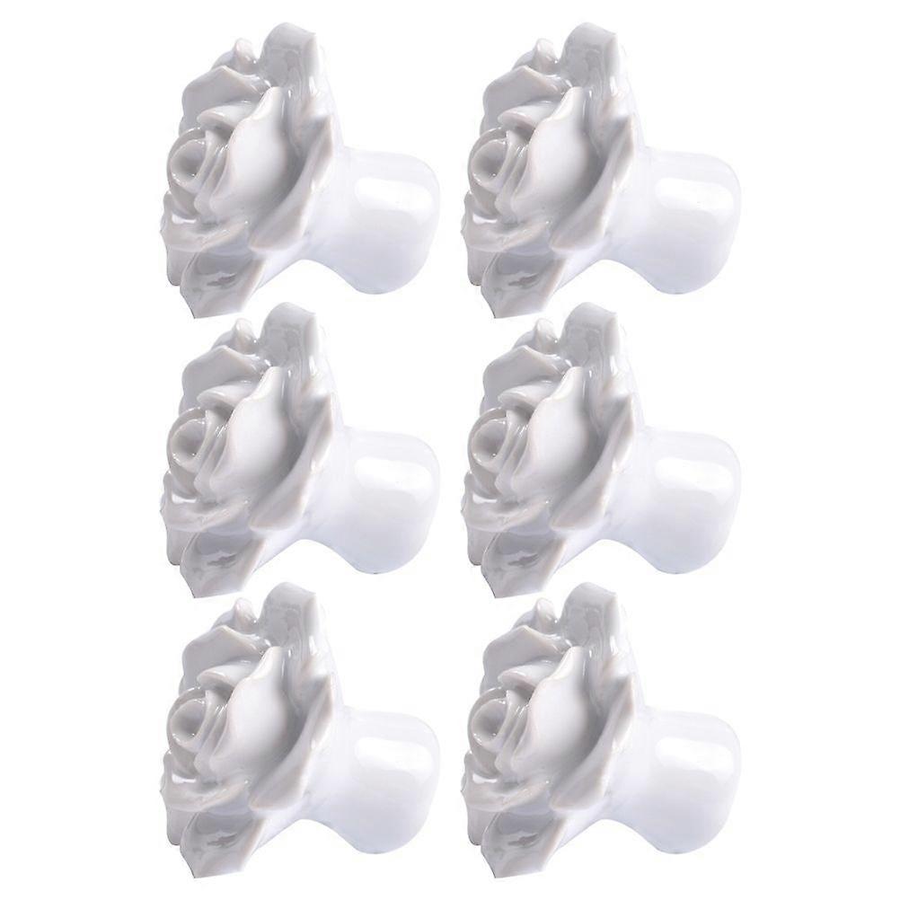 6pcs Rose Shaped Ceramic Cupboard Cabinet Drawer Door Knobs Pull Handles