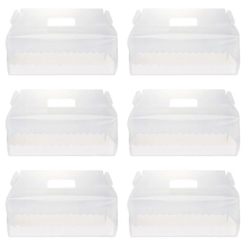 6pcs transparent cake roll packaging box with tray portable swiss roll containers dessert holder (long)