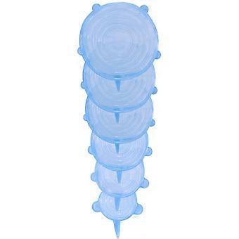 6x reusable universal silicone cover in blue - 6 freshness lids in different sizes