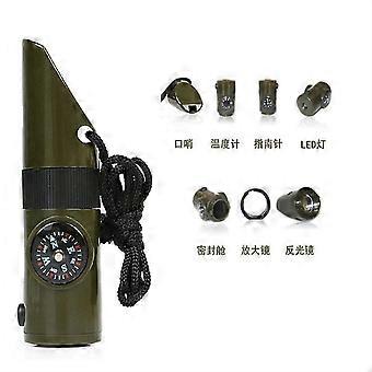 7-In-1 Emergency Survival Whistle Compass Thermometer LED Flashlight Magnifier