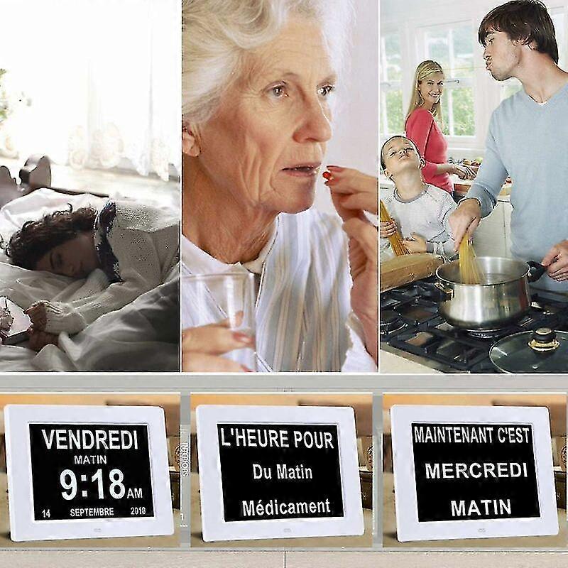 7" LCD Digital Calendar Clock with Date, Calendar Clock with Date, Day and Time | Alzheimer's Clock | Elderly Clock This is for Parents (White)