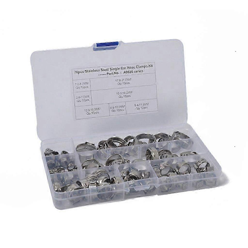70 Pcs Stainless Steel Single Ear Hose Clamps Assortment Kit - 7 Sizes of Crimp Hose Clamp & Cinch Rings for Secure Connections
