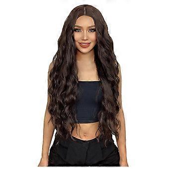 70cm Brown Medium Long Wavy Curly High Temperature Silk Material Rose Net Wig