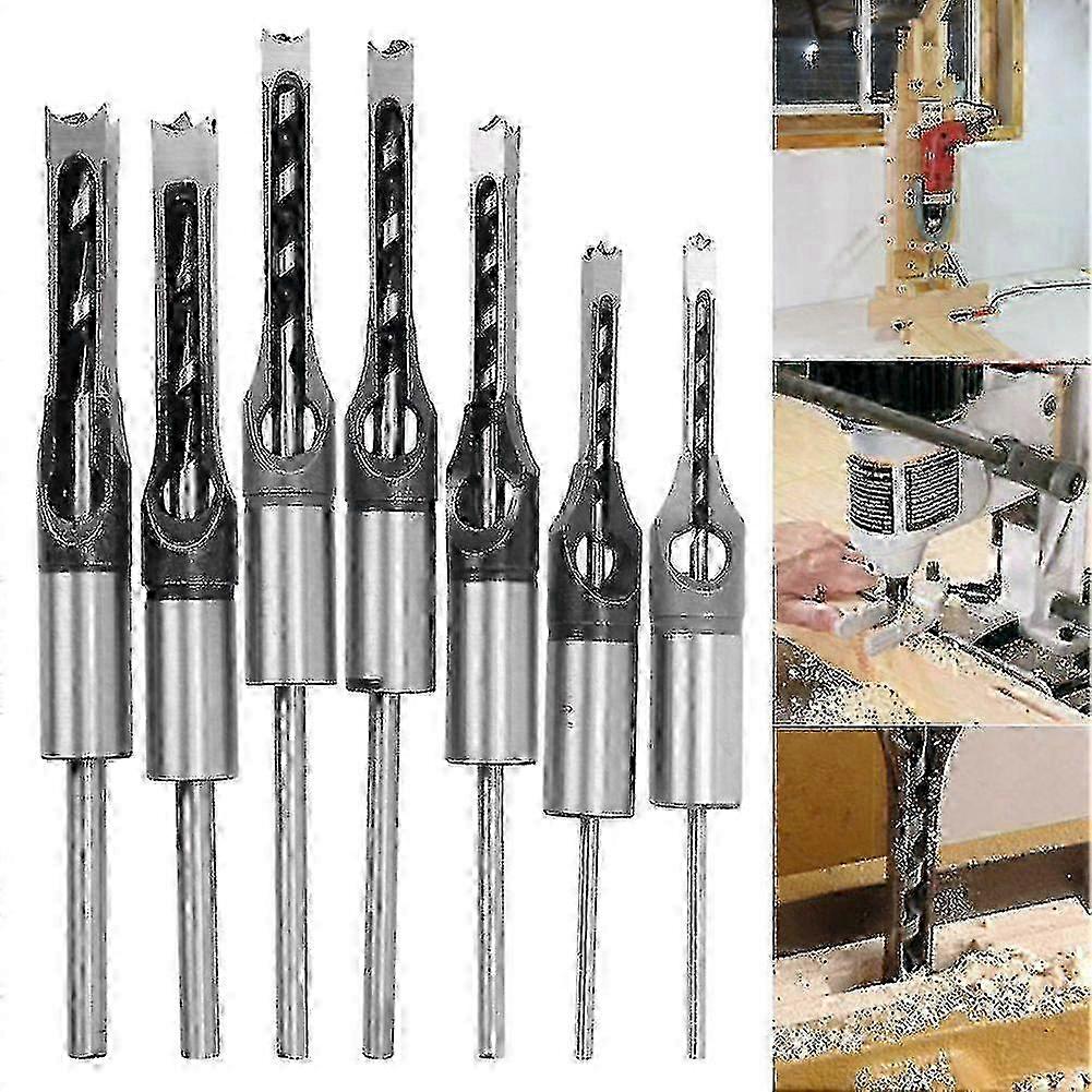 7pcs 1/4 To 1/2 Square Hole Drill Bit 45 Steel Mortising Drilling Woodworking Tools Mortising Chisel Set Square Hole Drill Bit-yujia