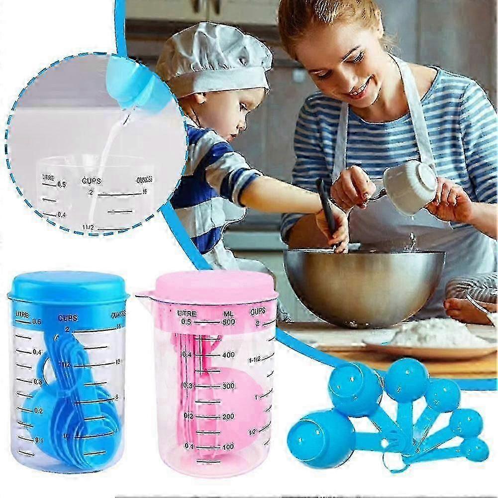 Clear Cup Body: The cup body is transparent, providing a clear view of the contents for easy recognition and a fresh visual appeal.: Made of high-strength materials with good toughness, the cups are resistant to breaking and cracking, ensuring long-lasting use and a strong porcelain-like texture. Condition: The product is , guaranteeing quality and freshness upon purchase.Convenient Storage Hook: Each cup is designed with a hook for easy storage, offering a space-saving solution. The set includes six cups of different sizes to cater to various needs, allowing for precise and versatile usage.Type : As Picture showsDescription : Features : 1.High Strength , Good Toughness , Not Easy to Break , Not Easy to Crack , Long-Term Use , Porcelain Texture is Strong2.The Cup Body is Clear , Put Any Water And Objects Will Be Clear At A Glance , Fresh Recognition3.Designed With A Hook for Easy Storage , Six Pieces Of Different Sizes , Suitable for A Variety Of Needs , More Accurate UsageCondction : Color : Blue / PinkMaterial : PvcSize : Measuring Cup : Diameter : 8.5cm , Height : 13cm , Capacity : 500MlMeasuring Spoons : Capacity : 2.5Ml / 5Ml / 7.5Ml / 15Ml / 60Ml / 80MlSpecifications : 1.High Strength , Good Toughness , Not Easy to Break , Not Easy to Crack , Long-Term Use , Porcelain Texture is Strong2.The Cup Body is Clear , Put Any Water And Objects Will Be Clear At A Glance , Fresh Recognition3.Designed With A Hook for Easy Storage , Six Pieces Of Different Sizes , Suitable for A Variety Of Needs , More Accurate UsagePackage Included : 1 X Measuring Cup6 X Measuring SpoonsPackage Including Note: Due to the light and screen setting difference, the item's color may be slightly different from the pictures. Please allow slight dimension difference due to different manual measurement. Sold by-YJL official store