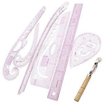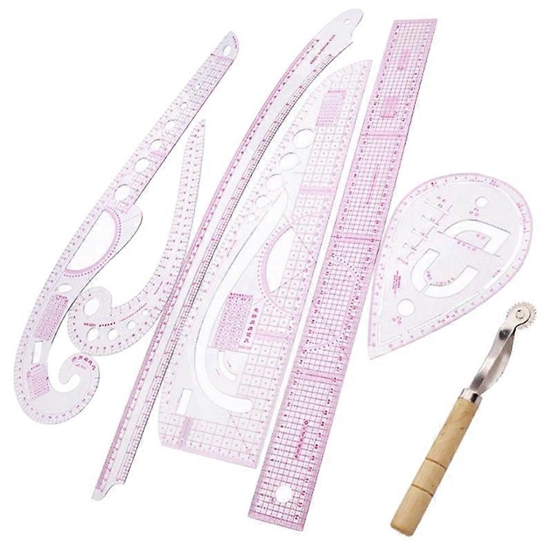 7Pcs/Set Ruler Tailor Measuring Kit Clear Sewing Drawing Ruler Yardstick Sleeve Arm French Curve Set Cutting Ruler Paddle Wheel