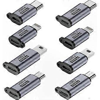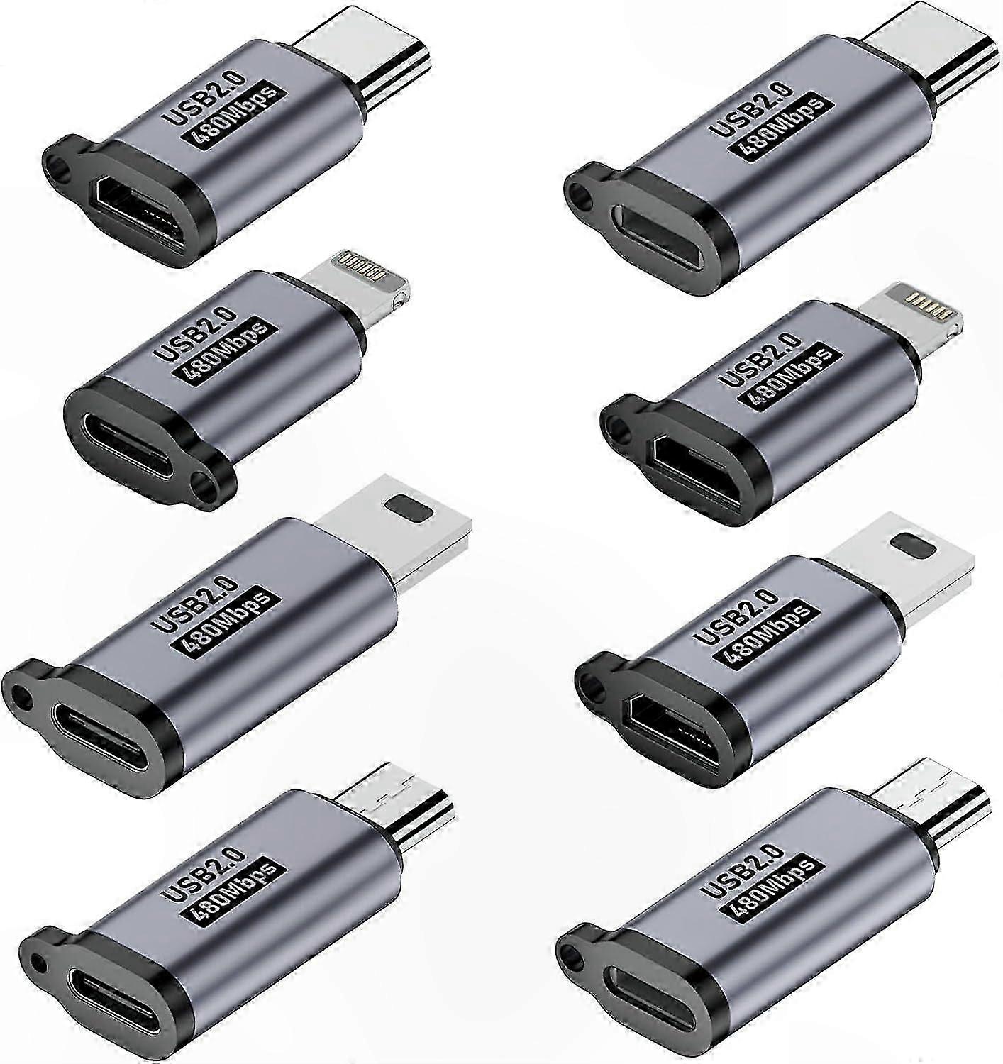 8-in-1 Multiport Adapter Kit with USB-C, Lightning, Micro USB, and Mini USB for Smartphones