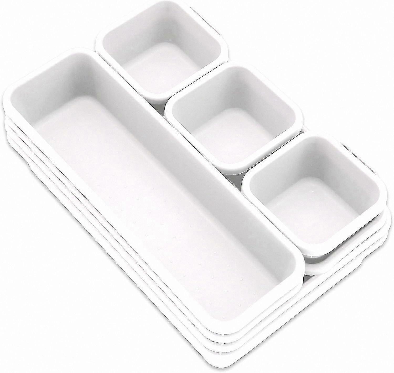 8-Pack Interlocking Drawer Organizer Trays in White for Storage and Dividers Plastic Solution