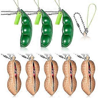 8 Pieces Peanut Peas Keychain Fidget Bean Toy Set Funny Facial Expressions Beans And Peanut Fidget Toy