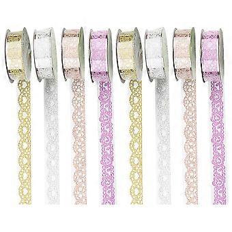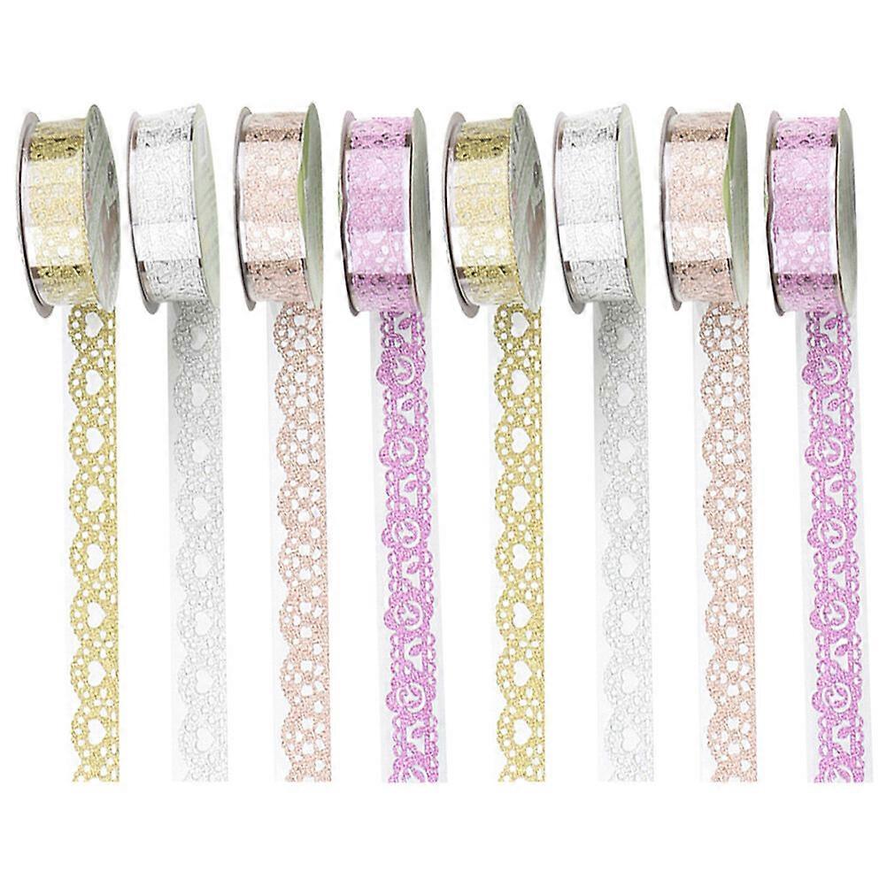 8 Rolls Lace Pattern Self-Adhesive Tape Glitter Bling Sticker Colorful Tape for Frame Gift Wrapping (Mixed Style)