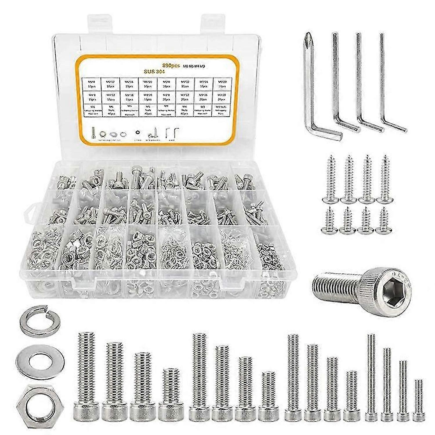 890Pcs M3-M6 Socket Head Cap Screws Hex Head Screws Assortment Set