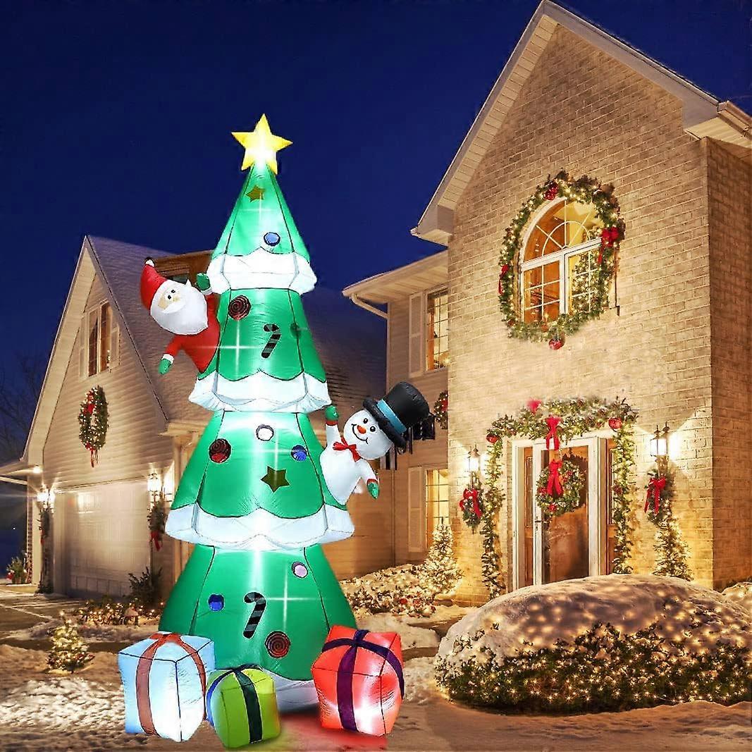 8FT Christmas Inflatable Tree Decorations,Christmas Tree Built-in Rotating Color LED Lights with Inflatable Santa Claus Snowman,Inflatable Christmas T