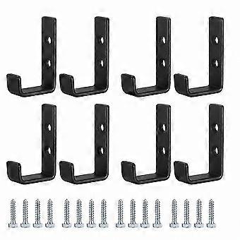 8PCS Durable Wall Hooks, J-Hooks for Garage, Black Screw-In Hooks for Coats, Tools, and More