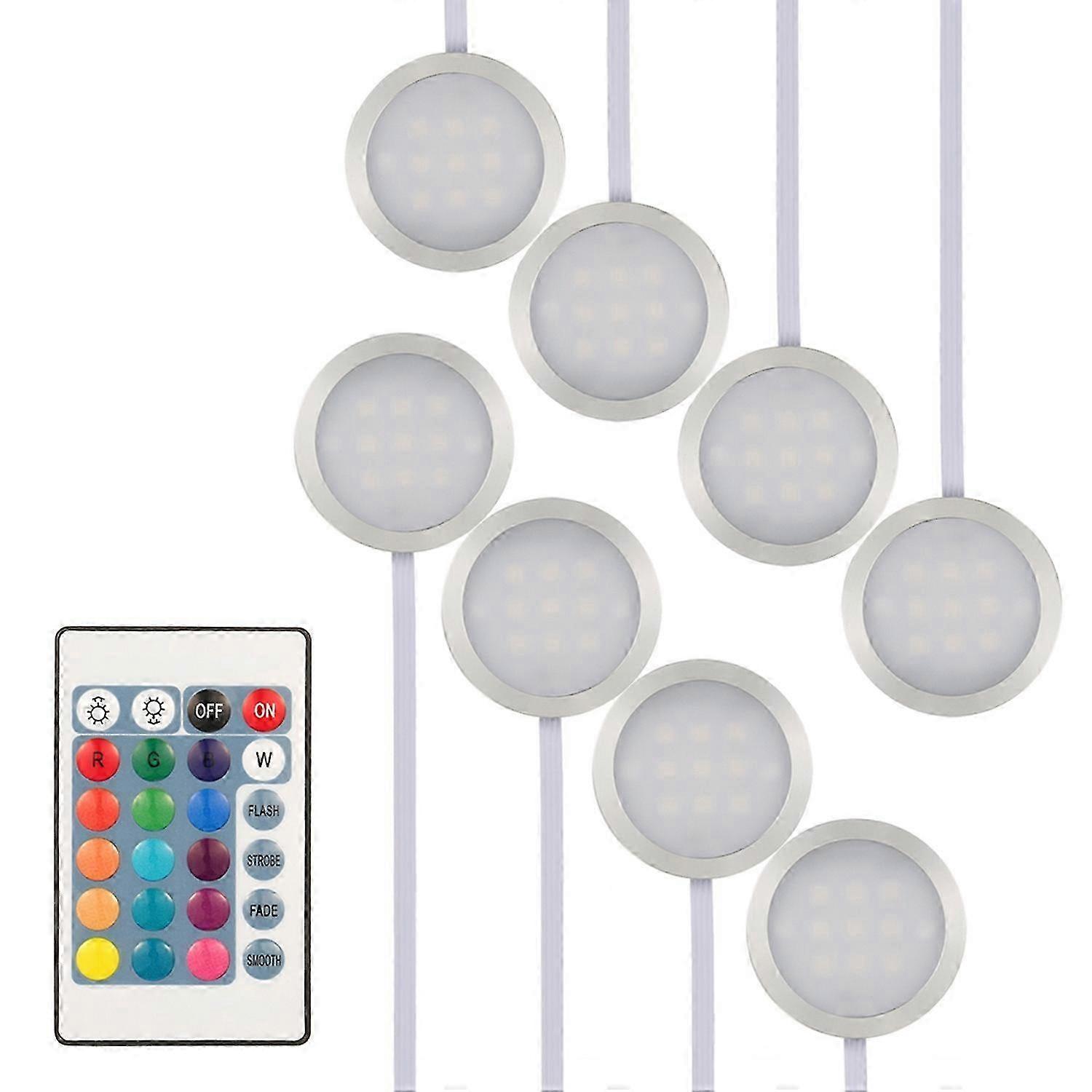 8pcs Slim Round Shape Rgb Leds Under Cabinet Light Kit Smd5050 Puck Lamp Color-changing Dimmable Bri