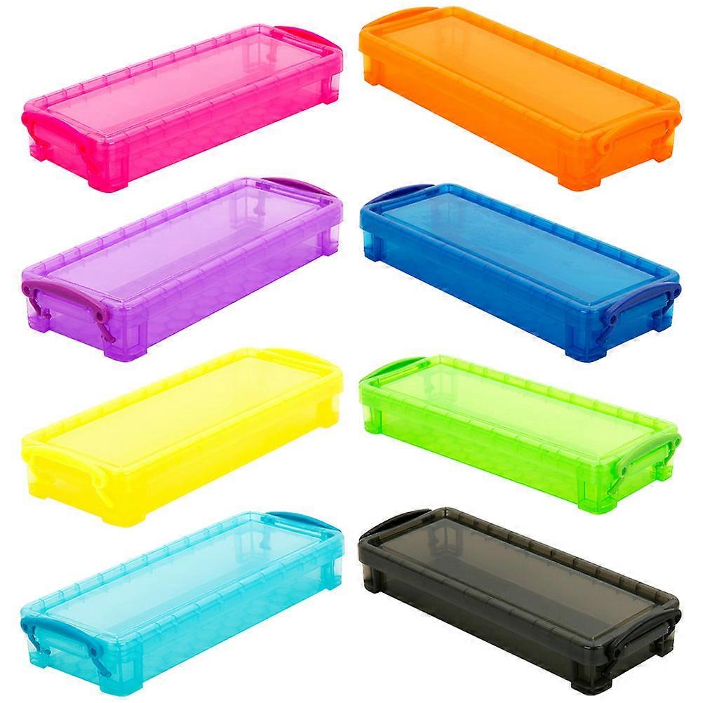 8pcs Transparent Pencil Case with Lid Large Capacity Portable Stationery Storage Box for Teachers and Students