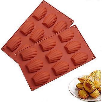 9 Cavity Madeleine Pan, 2pcs Nonstick Silicone Madeleine Molds, Shell Shape Pan (brick Red)