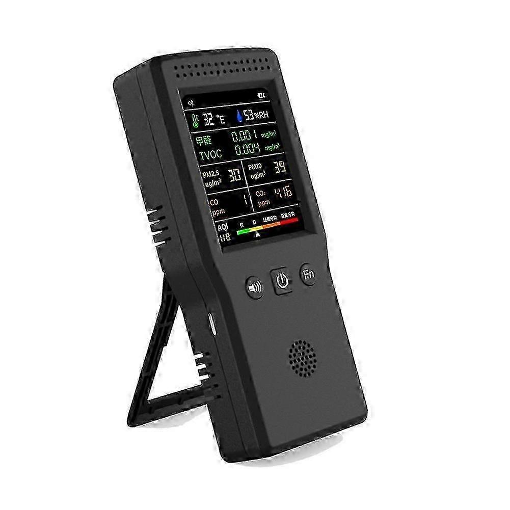 9-in-1 Air Quality Monitor with LCD Display Tracking PM2.5 PM10 HCHO TVOC CO CO2 Temperature Humidity and Air Quality in Black