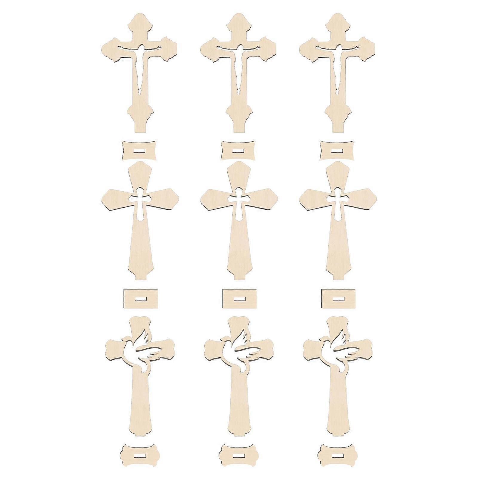 9 Pieces Wooden Cross Figurines Rustic for Wedding Communion Projects