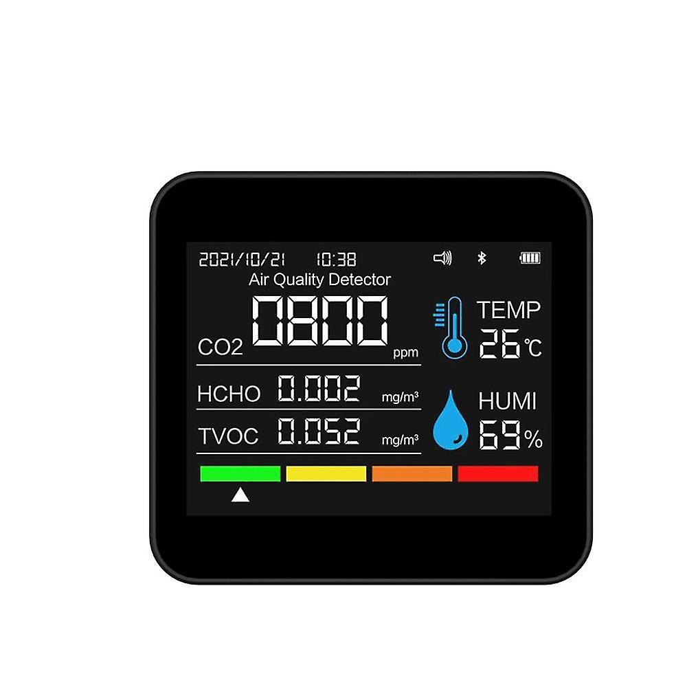 9in1 Bt Air Quality Monitor Time/date Co2 Tvoc Hcho Pm2.5 Pm1.0 Pm10 Temperature Humidity Detection
