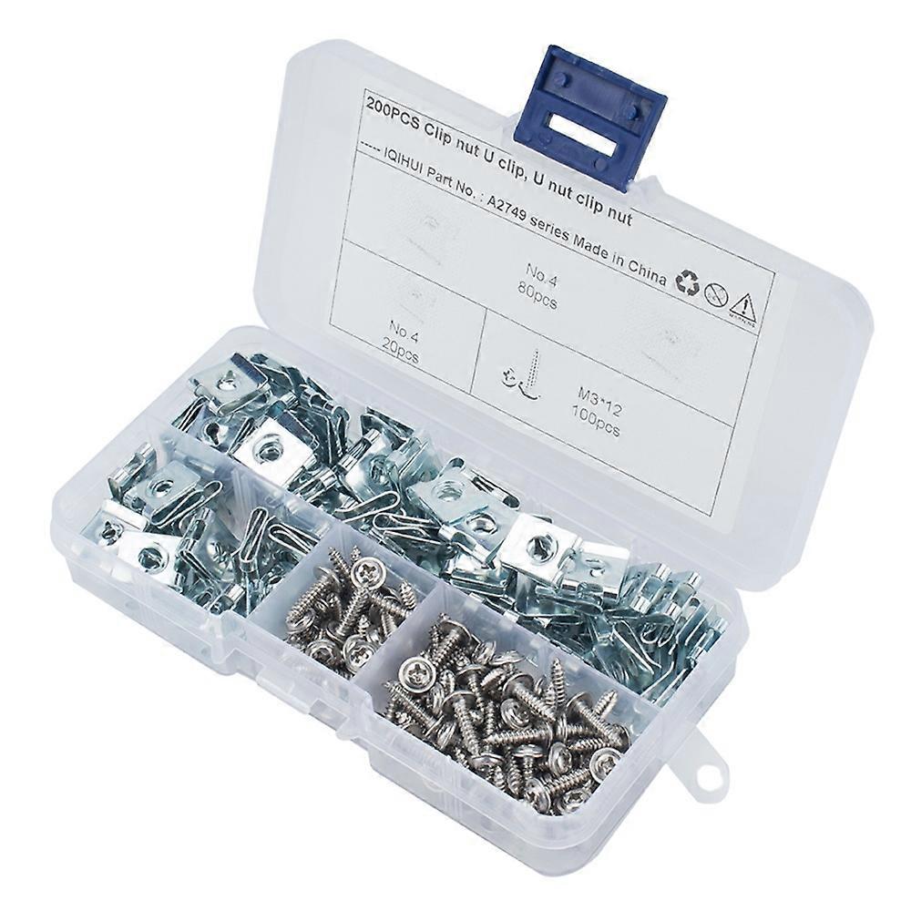A2749 200Pcs Rust Resistant U Type Clip Nut and Self Tapping Screw Assortment