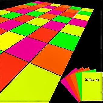A4 Luminous Paper 20 Sheets in 5 Colors for UV Black Light Party Decor