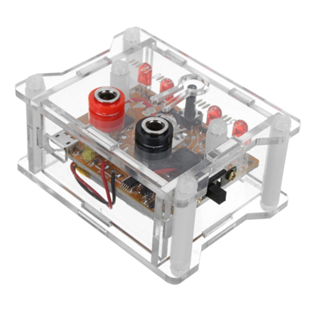 Description: Built -in AD584, highest accuracy and stability. Same port can output reference voltage : 2.5v, 7.5v, 5v, 10v. The MCU switch 4-way reference voltage output with LED indicators. operation switch reference voltage. 4mm banana socket as output interface. Specification: Material: Plastic Size(Approx.): 80x50x40mm/ 3.15x2x1.5inch. Package Includes: 1 Piece High Precision Voltage Reference Module with Housing Note: 1. Please check input battery charging voltage and do not charge with more than 5.5 volts 2. Please charge with a USB adapter.