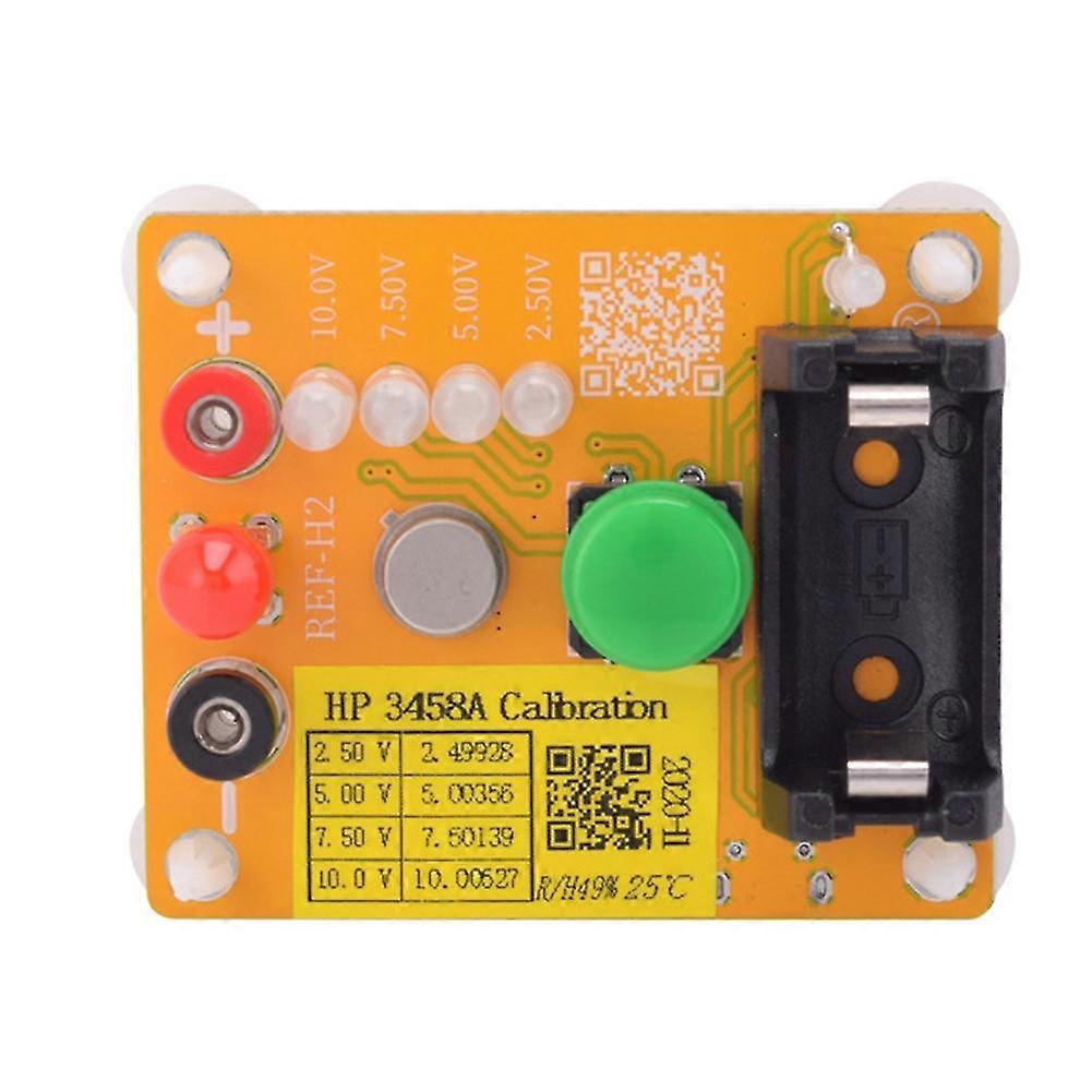 1. The battery is a 300mAH standard special battery, the voltage is 3.7V and the model is 142502. The charging and discharging interface is -USB; the voltage is DC5V3. The benchmark is not in use. Fully charge in sequence every two months. The board has built-in charge management and charge and discharge protection. Note that the battery polarity must not be reversed.4. The output interface is a 2mm banana socket, and there is an SMA output interface for calibration. Use HP3458A eight-and-a-half digits multimeter to calibrate (use after full preheating). Re-calibration calibration conditions, time and calibration value record card will be pasted on the benchmark, please keep it properly5. Press and hold for 2 seconds to turn on the machine. When turning on, the four indicator lights will light up at the same time, and then output the 2.5V reference voltage. After turning on, short press the button to switch the gears, followed by 2.5V-5V-7.5V-10V and long press for three seconds To shut down, the voltage indicator will go out immediately after shutting downMaterial:plasticcolour:yellowPackage Contents:1 * Reference ModuleOnly the above package content, other products are not included.Note: Light and different displays may cause the color of the item in the picture a little different from the real thing. The measurement allowed error is +/- 1-3cm.