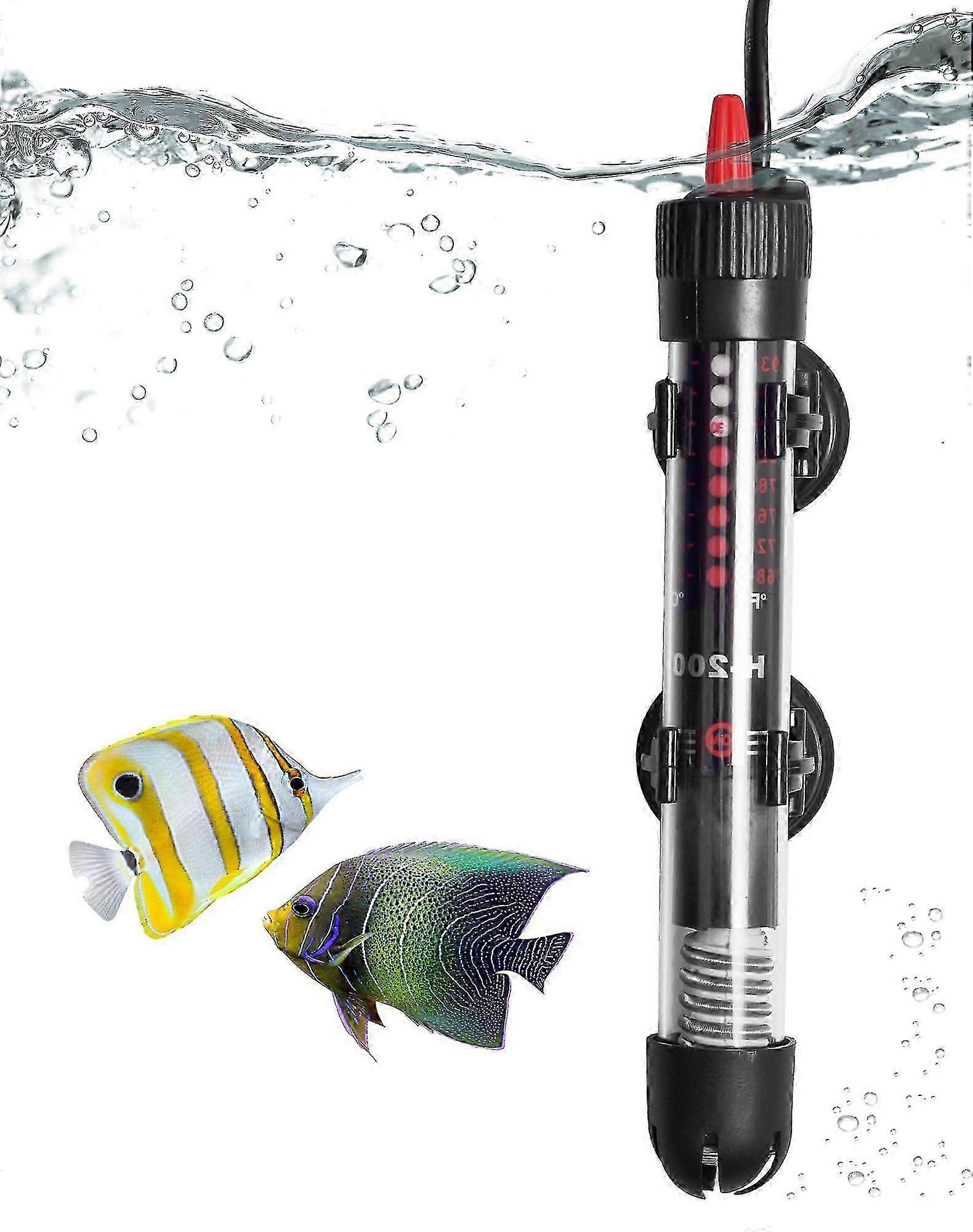25W Aquarium Heater: The aquarium heater features a fully submersible waterproof design to maintain the set temperature precisely and safely. Operating power: 25W, size: 195mm x 25mm. The aquarium heater is suitable for small aquariums, recommended for aquariums with a size of up to 30L. Safe and durable: This aquarium heating rod is made of high quality quartz glass. 2mm thick and made of double waterproof components, 33% thicker than normal 1.5mm aquarium heater glass, double sealed, explosion-proof, shatterproof and IP68 wash-proof. NOTE: When changing the water in the aquarium, please turn off the power ten minutes in advance and then change the water. Adjustable temperature: The adjustable temperature display range is From 20C to 34C (68F to 93F), on the front of the driver is an easy-to-read temperature scale. The rotary knob on the top can adjust the desired aquarium temperature on the scale. Precise temperature regulation: The aquarium heating bar has a high-resistance heating wire and a built-in thermostat to automatically maintain the water at the set temperature within +/- 1F (1C) error, the "ON" light in the middle allows you to clearly see if the product is working properly, ensures proper water temperature sufficient and stable water for your beloved fish. Easy to install, with 2 powerful suction cups, you can put it at any angle, please soak the heater completely in water. This 25W aquarium heater is suitable for up to 30 liters of water, both fresh and salt water. Intelligent constant temperature heating, providing your fish with a safer and more comfortable environment.