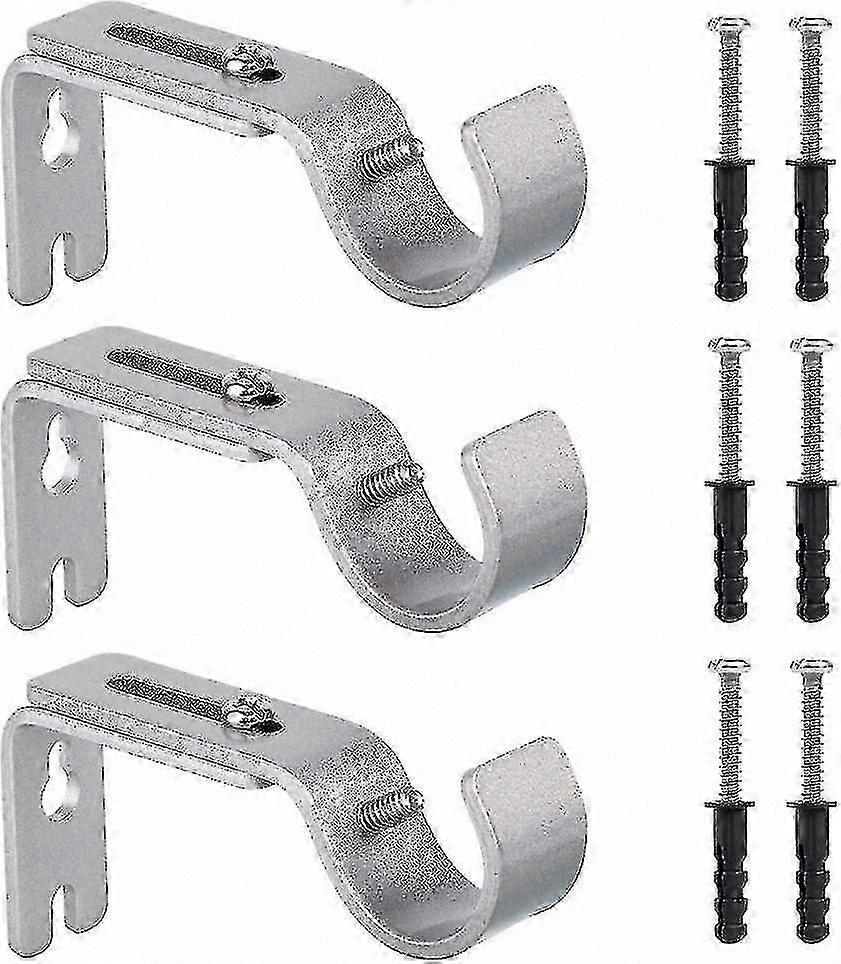 Adjustable Curtain Rod Bracket Set with Screws and Fixings, Silver Finish