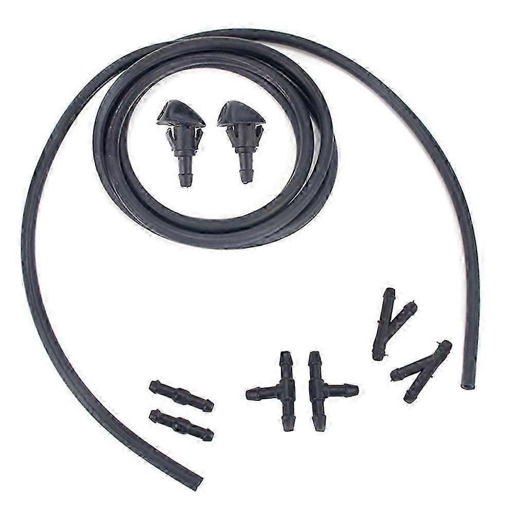 Adjustable DUAL HoleWindshield Washer Nozzle Set 2 Meters Fluid Hose with 6 Pcs Connector for 76810 js