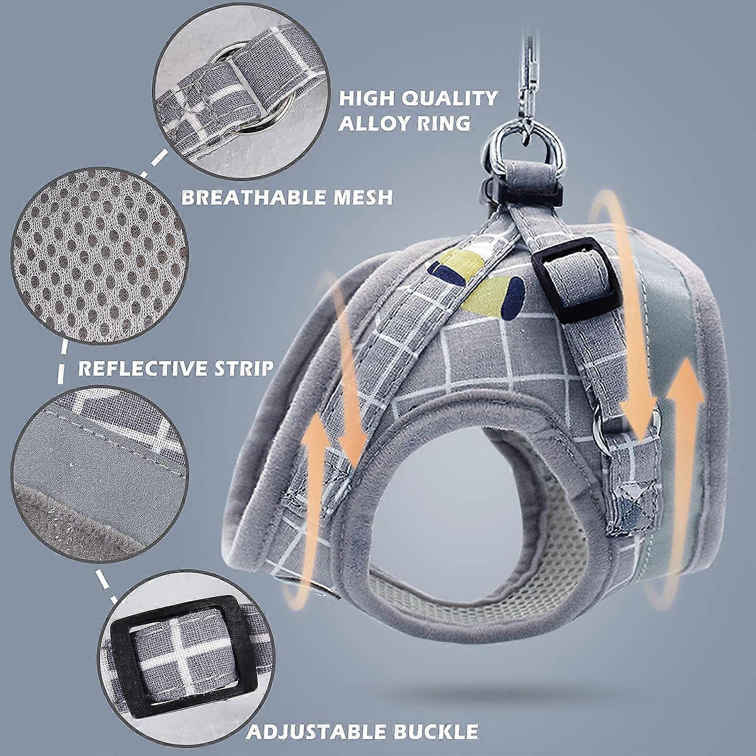 Adjustable Harness Vest Padded Reflective Soft Breathable Comfortable Leash for Small Dog Puppy MZ083 (M Grey)
