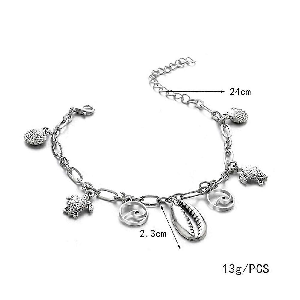 Adjustable Silver Ankle Bracelet with Multiple Charms Shell Tortoise and Extenders for Women Casual Daily Use 24x2.3x0.5cm 1Pcs