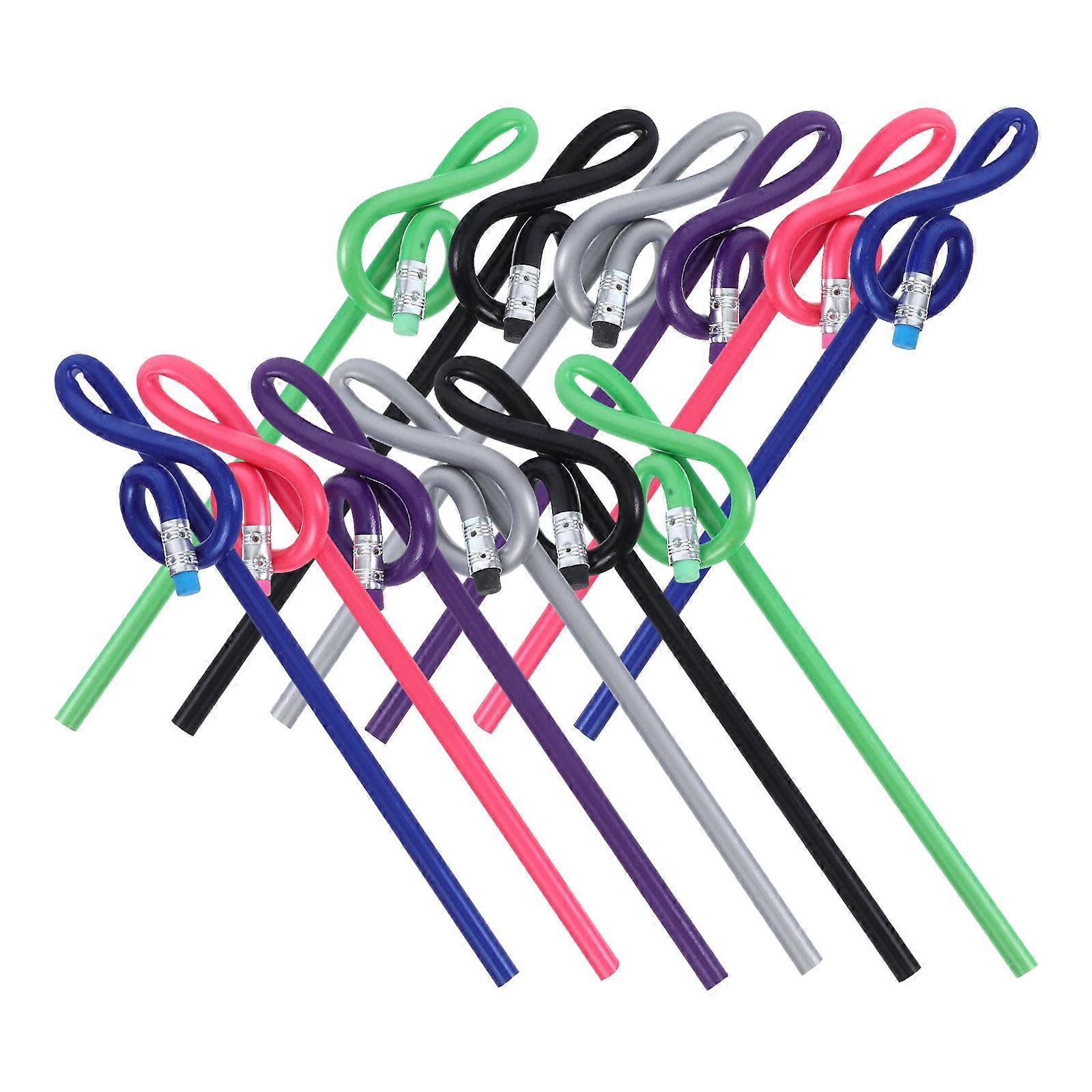 Adorable 12pcs Musical Note Pencils with Eraser Multi Color Portable Writing & Sketching Tools for Students & Artists Erasable Bent Design for