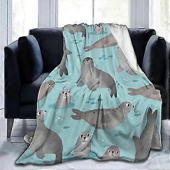 Adorable Seal Design Fleece Throw Blanket Soft Plush Cozy Lightweight for Sofa Bed Couch Relaxation