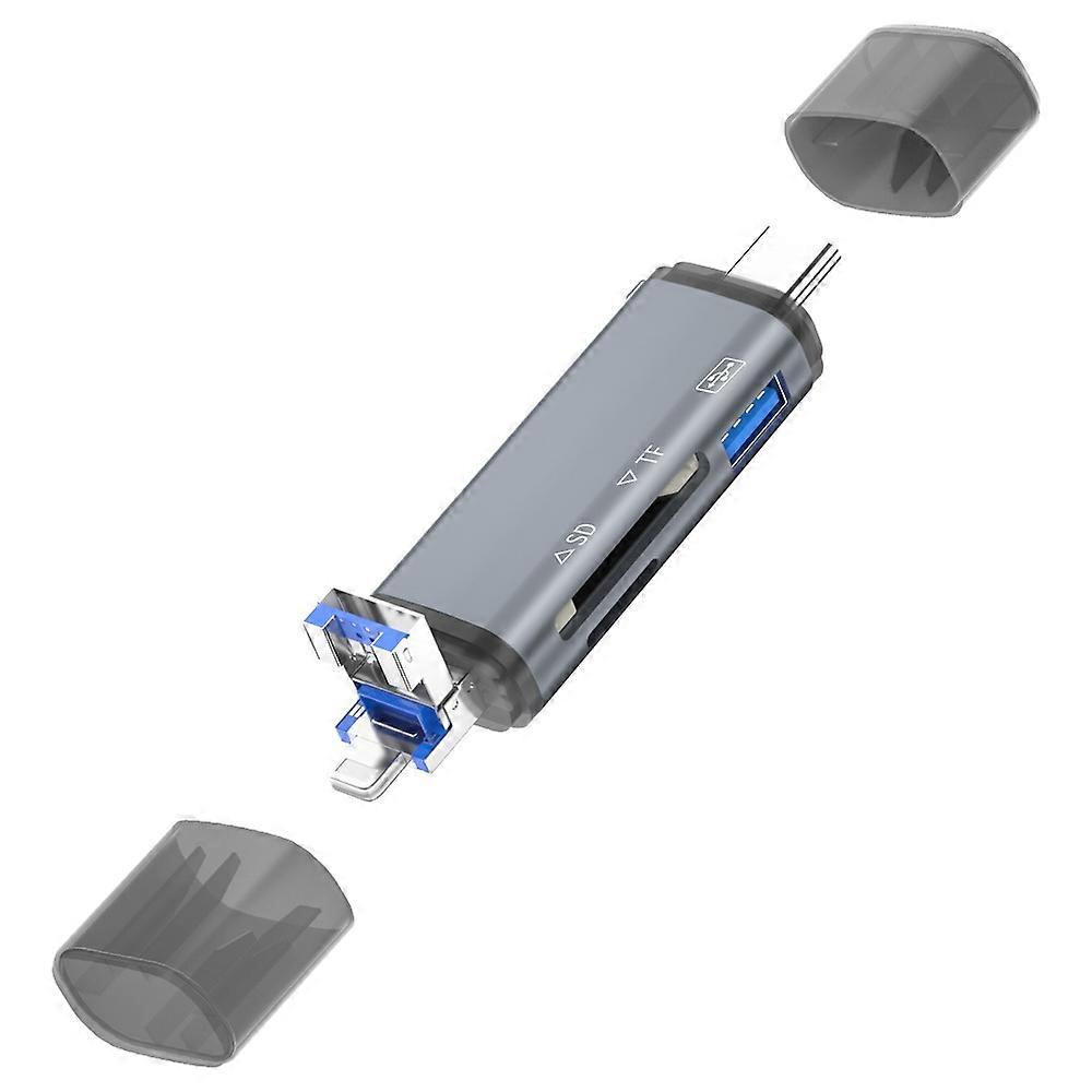ADS-306 USB/8-Pin/Type-C Plug SD TF Card Reader U-Disk Data Transfer Adapter