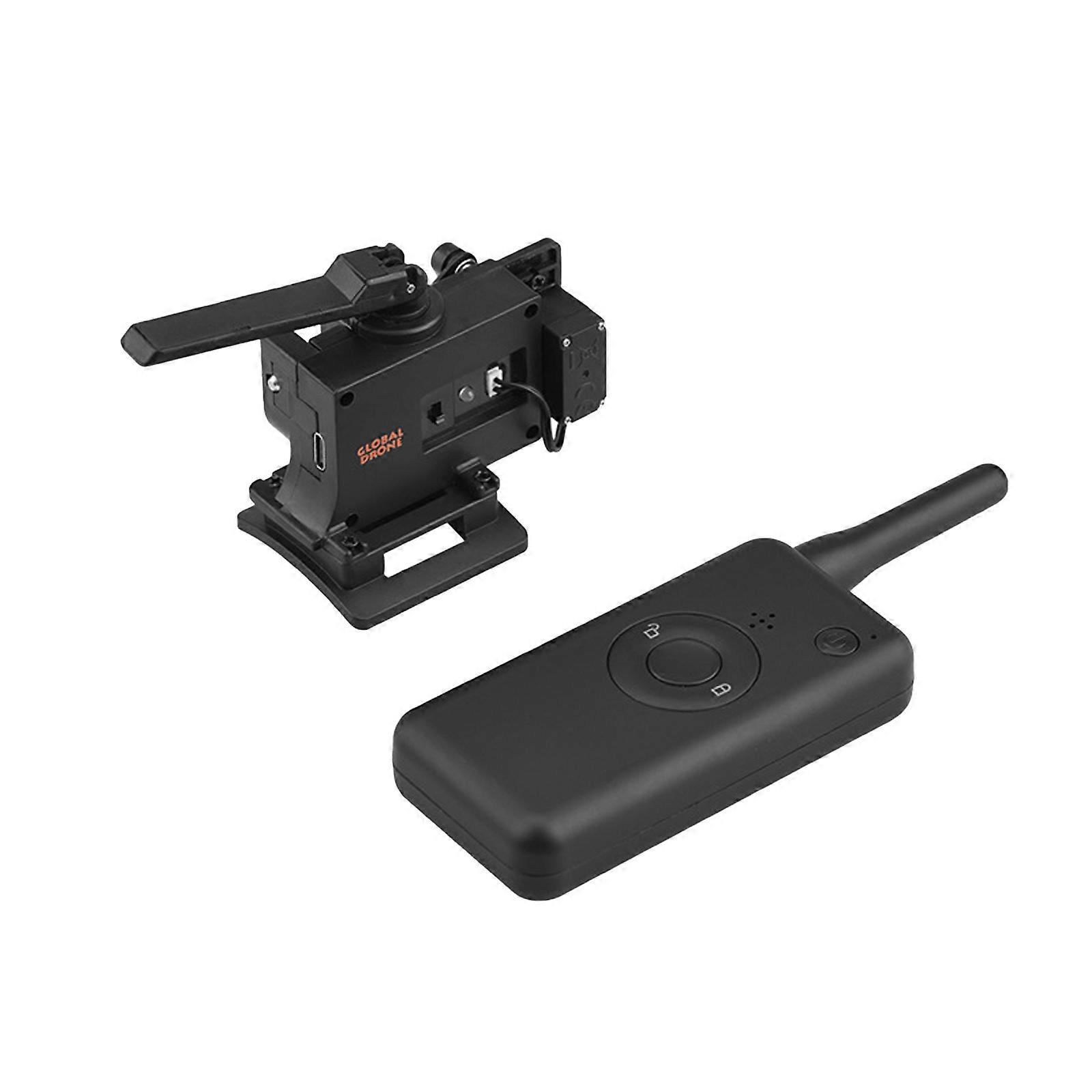 Specifications: Material : ABS Applicable models : for Mavic 2 / Pro / Air 2 / Air / Mini 2 / FIMI X8SE , Phantom 3 4 , X193 PRO , SG906 PRO , X7 PRO , SG901 , SG907 , E520S , S162 , F11 , GW90 , GW198 , GD91 Size : 9 . 5x4 . 5x6 . 5cm ( thrower ), 15 . 5 x5 x2cm ( remote control ) Thrower battery specifications : 3 . 7V - 350MAH ( built - in lithium battery ) Remote control battery specification : 3 . 7V - 350MAH ( built - in lithium battery ) Charging time of the thrower : about 30 minutes Remote control charging time : about 30 minutes Use time : about 2 hours Remote control distance : about 500 meters Operating frequency : 2 . 4G Feature: Drone realizes long - distance transmission of items. Used for airdrop materials , outdoor rescue , express delivery , wedding flowers delivery. The remote control of the thrower is launched with button , and the - small body is powerful. It can be fixed on the drone without affecting the flight . The straps can be installed to avoid the bottom sensor. - Click Operation with the Remote , the Remote Range of Delivery Device is the Same as the Range of the Drone Remote. Package includes: 1pc of Air Drop Release Dropper Device Kit