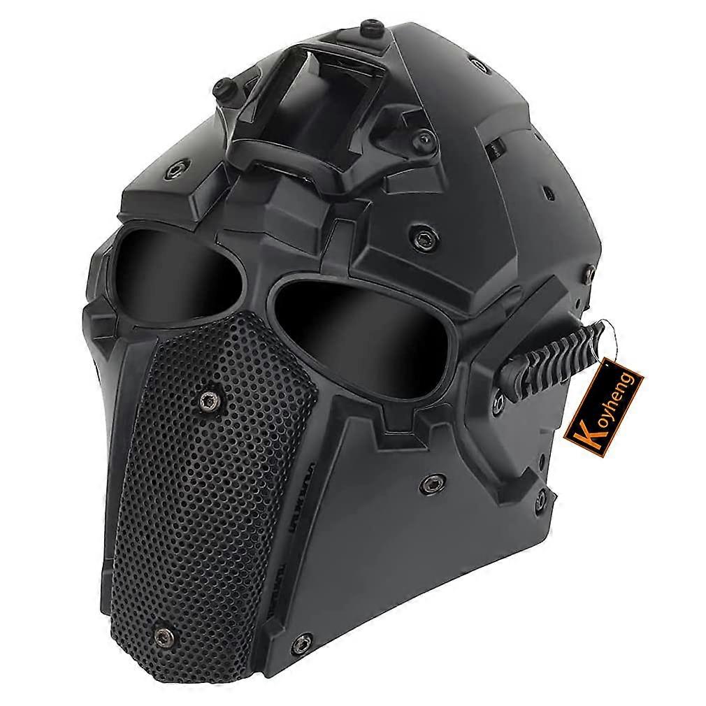 Airsoft Mask, Tactical Helmet Full Mask with Side Rails and NVG Mount, Protective Mask Bk