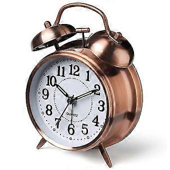 Alarm Clock Twin Bell Retro Copper Metal 6" Extra Loud Quartz Battery Operated With Backlight - CHUN