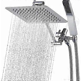 All Metal Dual Square Shower Head Combo | 10 Rain Shower Head with Handheld | 71 Long Flexible Hos