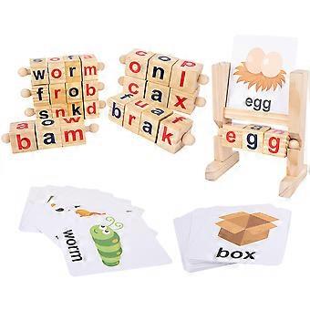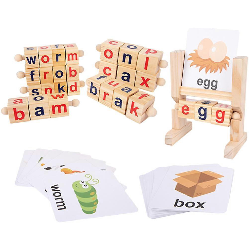 Funny and colorful spelling flash cards, safe wooden letter blocks , perfect combination toy. Kids can the words on the wooden alphabet blocks according to the pattern of the card, they will help your kids learn the alphabets and object early. With good hand feeling, great for children playing. Features -Color:Assorted Color -Material:Wood, paper -Size:12.50X15.50X19.50cm/4.91X6.09X7.66in - They can easily draw kids’ attention and help them recognize different object and alphabet. - The wooden reading blocks toy is small and lightweight, more convenient to carry and store. - The appearance of the surface is very smooth, rounded corner processing, safe for kids to play with. - Suitable for kids boys and kids girls. You can buy it as a birthday, holiday, Christmas gifts for children. - The wooden reading blocks helps promote parent-child activities, cultivate children's cheerful personality. Package list: x Rotating Letter Blocks 96 x Flashing Cards 3 x Holder