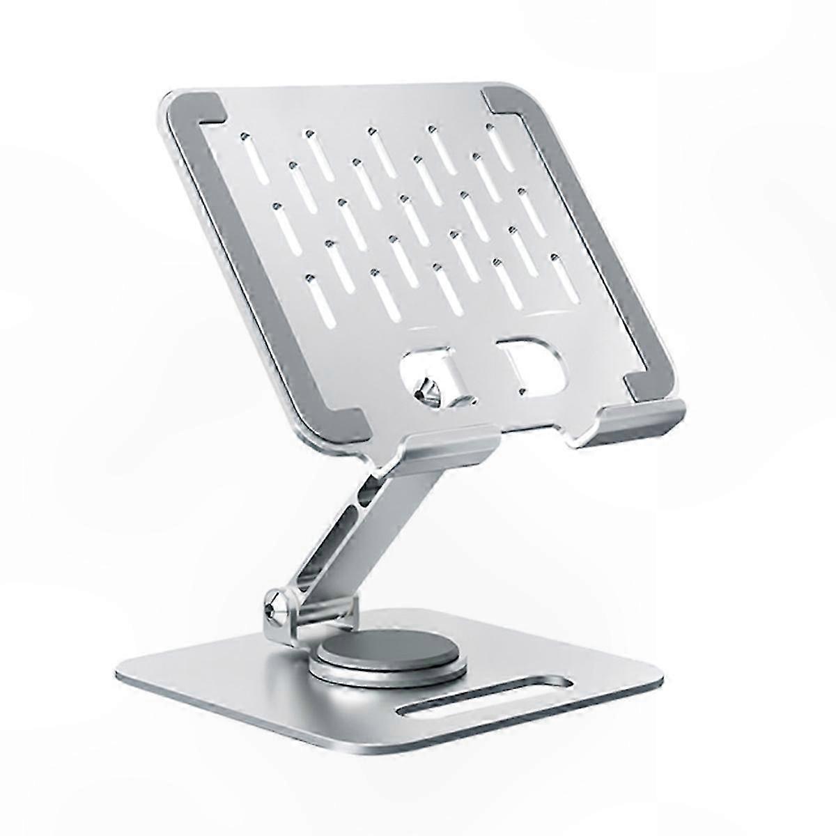 360° free rotation: features a new rotating base that allows smooth, lag-free rotation with no angle limitations. Widely applicable: supports tablets and mobile phones, enabling easy switching between horizontal and vertical screen orientations. Free adjustment: adjustable to comfortable angles at any height. Easy to carry: foldable design with lightweight construction, weighing about the same as a mobile phone, making it convenient to transport. Stable and steady: full metal frame provides strong support, ensuring stability without shaking or tipping. Ingenious design: incorporates a hollow structure for effective heat dissipation, helping maintain device performance. Rotating mobile phone holder, desktop metal stand, bedside tablet stand, lazy folding adjustable base, designed for comfortable device use, reducing hand strain during office tasks or daily entertainment, enhancing work comfort and enjoyment. Color: silver Material: aluminum alloy Package Contents: 1 x Laptop Stand Note: The package includes only the items listed above; other accessories are not included. Note: Lighting effects and display differences may cause slight variations in color between the image and the actual item. Measurement tolerance: ±1-3 cm.