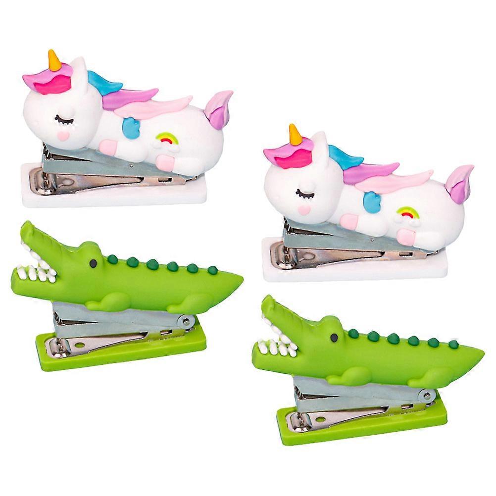 Brighten up your desk with this set of portable and cute mini staplers. These cartoon-themed staplers are great for kids and adults who want to add a bit of personality to their school supplies or office desk. Their compact design makes them easy to carry and store, ensuring you always have a stapler when you need one. Simply load the staples, align your papers, and press down to staple quickly and efficiently. Features -Color:Assorted Color -Material:Silicone,Stainless Steel - Size: 8.60X5.60X4.20cm/3.38X2.20X1.65in - Size: 7.00X5.60X2.90cm/2.75X2.20X1.14in - Size: 7.50X5.70X3.00cm/2.95X2.24X1.18in -Cute and fun design: the adorable cartoon appearance of this stapler makes it a fun and attractive addition to any desk, great for kids and adults alike. -Convenient portability: its small and lightweight design makes it easy to carry around, can have a stapler handy whenever you need it. -Efficient stapling: designed to be laborsaving, this stapler allows you to complete your stapling tasks with minimal effort, improving your efficiency. -Versatile application: ideal for use in both school and office settings, this stapler is great for a wide range of stapling needs, enhancing productivity. -Compact storage: the mini size of this stapler ensures it takes up minimal space, making it easy to store and keep your workspace . Package list: 4 x mini staplers