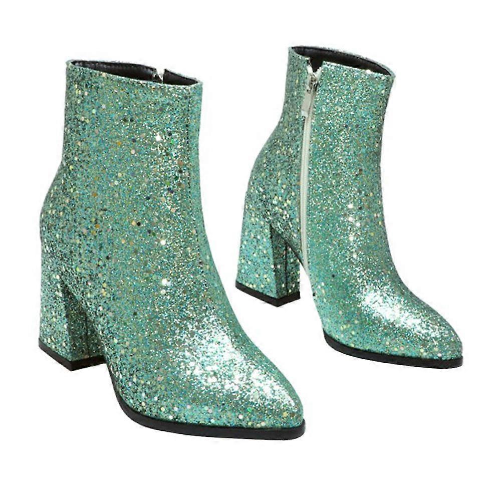 Anti-Slip Sole Women's Ankle Boots Pointed Toe Sequins Design Green 1Pair