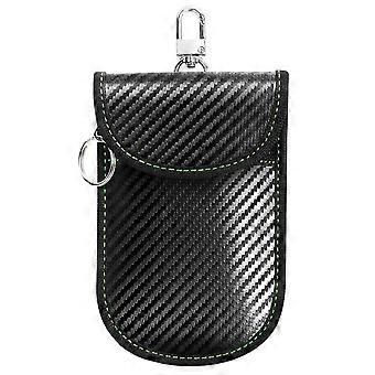 Anti Theft RFID Shielding Key Fob Protector Carbon Fiber Texture PU Leather Car Key Signal Blocking